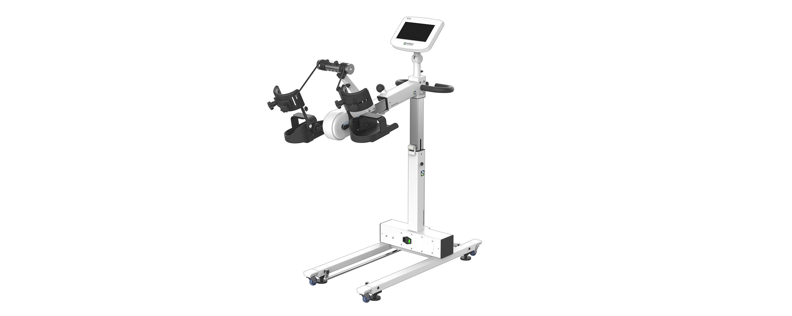 根据预设参数输出给定信号,带动使用者或使用者主动使力使肢体末端沿定轴作圆周运动,从而上肢和/或下肢的整个肢体(包括肩、肘、腕、指、髋、膝、踝关节和相关肌群)进行综合运动训练,以增强使用者关节活动度和肌力。