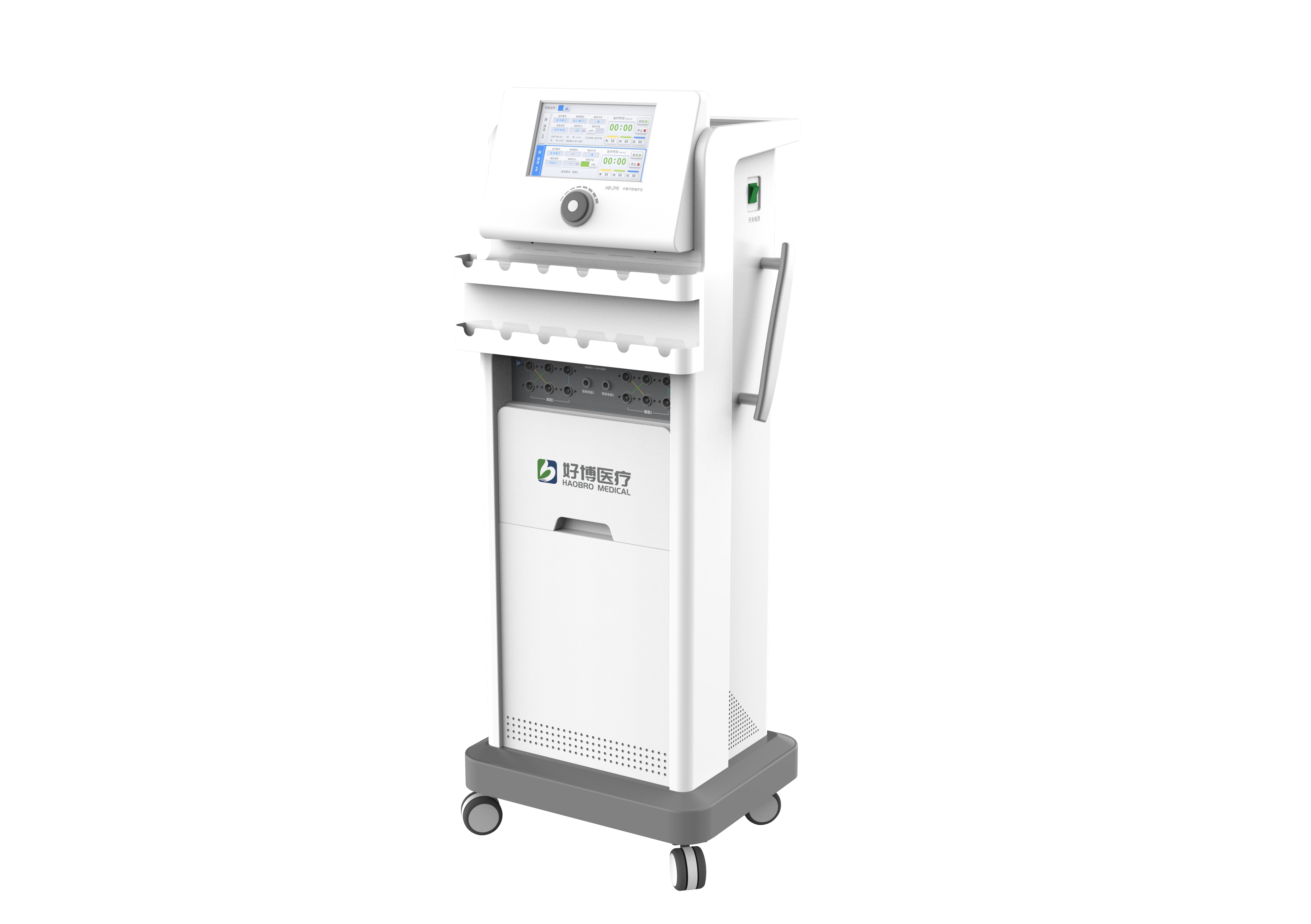 两路或三路不同频率的中频电流交叉输入人体,在体内互相干扰产生差频电流作用于人体起到镇痛、兴奋神经肌肉组织、改善血液循环、软化瘢痕、松解粘连等作用。